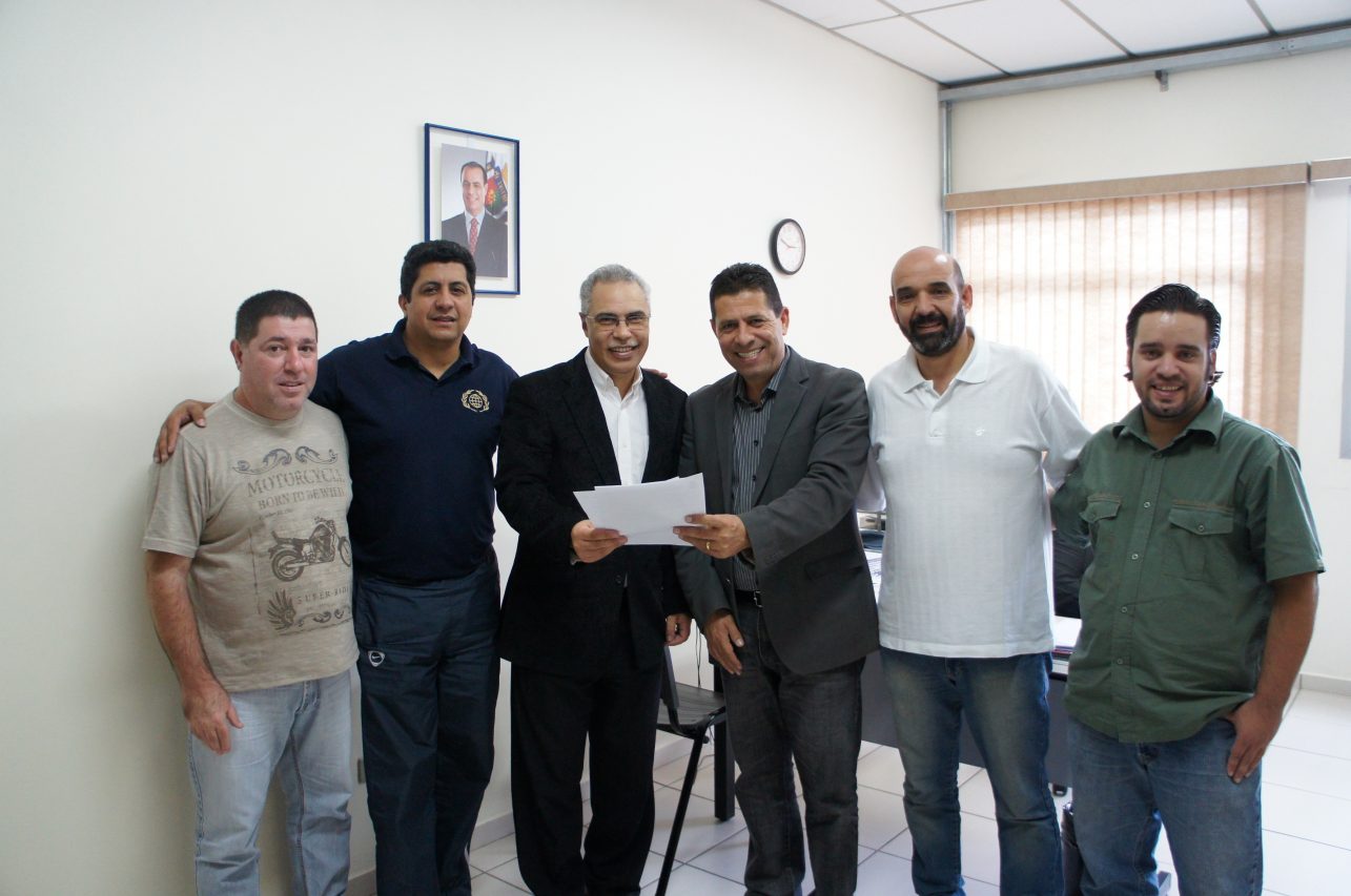 O secretário de Esportes de São Caetano,Gilberto Costa, recebeu os responsáveis pela Confederação Brasileira de Desportos Cristão, Alirio Misael, Odair Borges e Diógenes Garcia para assinar o convênio que traz para a cidade a 13ª edição dos Jogos Abertos da Juventude Cristã.