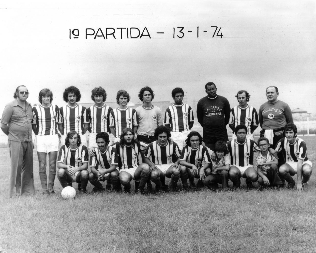 Com a colaboração do sr. Luiz Romano, filho do saudoso massagista Mário Romano, podemos relembrar da equipe que participou da primeira partida oficial (13-01-1974), após fusão do clube Tamoyo, que acaba de comemorar 68 anos, no último dia 15 de maio. Em pé (esq. p/ dir) – Valter Roca (Técnico), Gato, Nico, Gilson, Osvaldo, Português, Edson, Claudionor, Eduardo, Mario Romano (Massagista). Agachados (esq p/ dir) – Chorão, Canhoto, Alemão, Joãozinho, Ramon, Naná, Flávio.