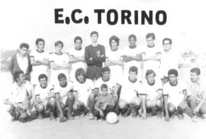 Em pé da esquerda para a direita: 01 – Torrinha (Baianinho), 02 – Nego (Lázaro), 03 – Tucano, 04 – Dimas, 05 – Pirulito (Victor, o goleirão), 06 – não identificamos – 07 Pelézinho, 08 – Da Guia, 09 – Treinador José Petrecca (SM), o famoso massagêro, 10 – Baltazar, 11 – Garrinchinha, 12 – Boi, 13 – Zé da Padaria, 14 – Rui, 15 – Edilton, 16 – Strima, 17 – não identificamos, 18 – Jim. Cantinho do Zezé Memórias sauda os atletas que passaram pela gloriosa história esportiva do EC Torino que também foi fundado em memória do Torino da Itália que pereceu no trágico desastre da aviação.