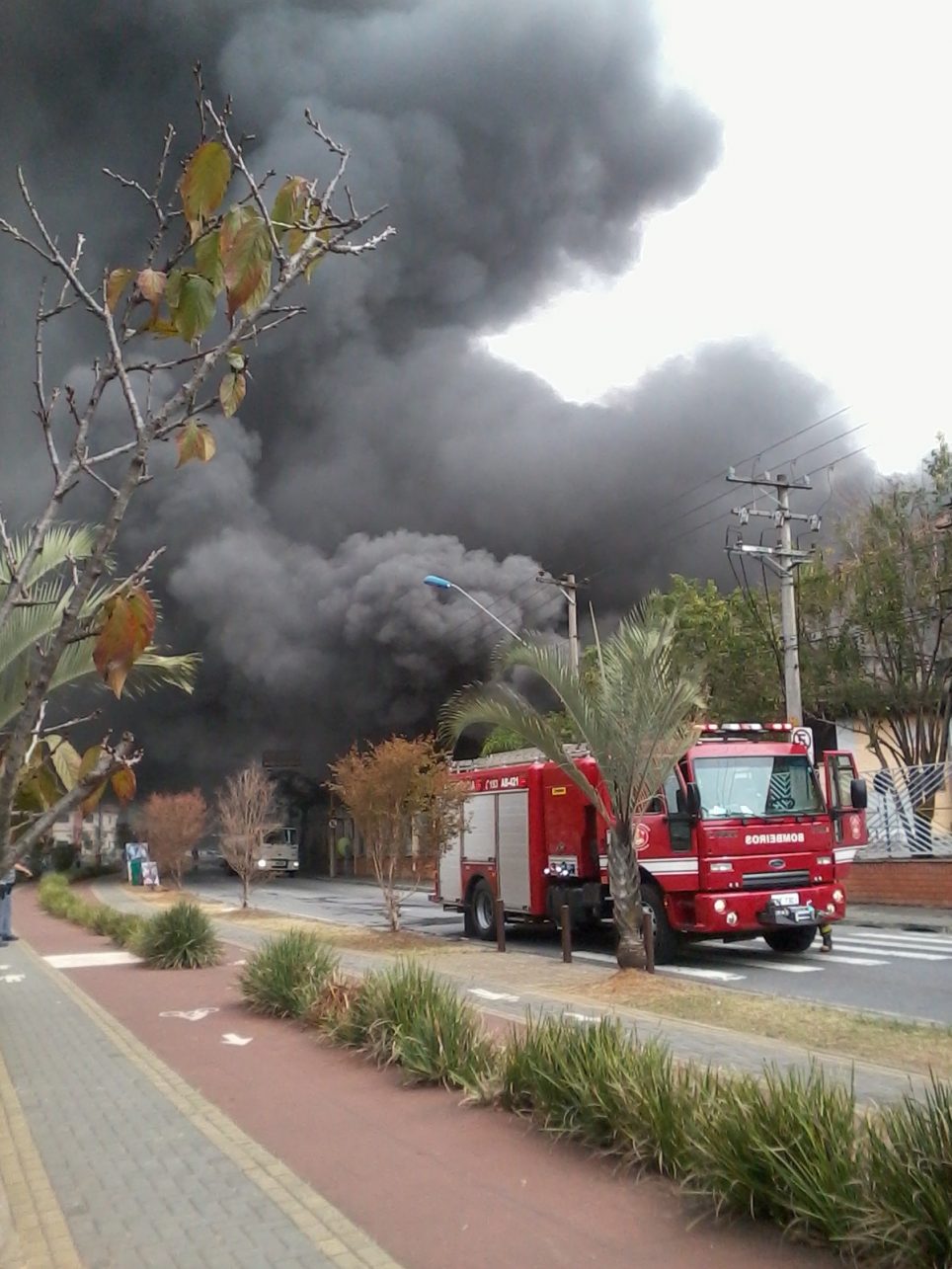 O corpo de bombeiros está controlando as chamas e a grande quantidade de fumaça que formou prejudicou a visibilidade de toda a avenida e o serviço dos bombeiros.