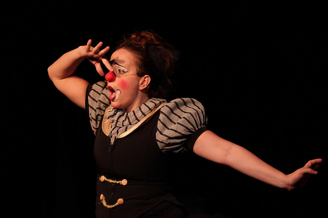O espetáculo nasceu da vontade de colocar a palhaça em uma situação limite. Brincar com conflitos psicológicos sob o olhar do palhaço. Na cenografia, uma corda bamba e um buraco desenhado no chão. A partir daí cria-se o universo de da palhaça Fiorela.