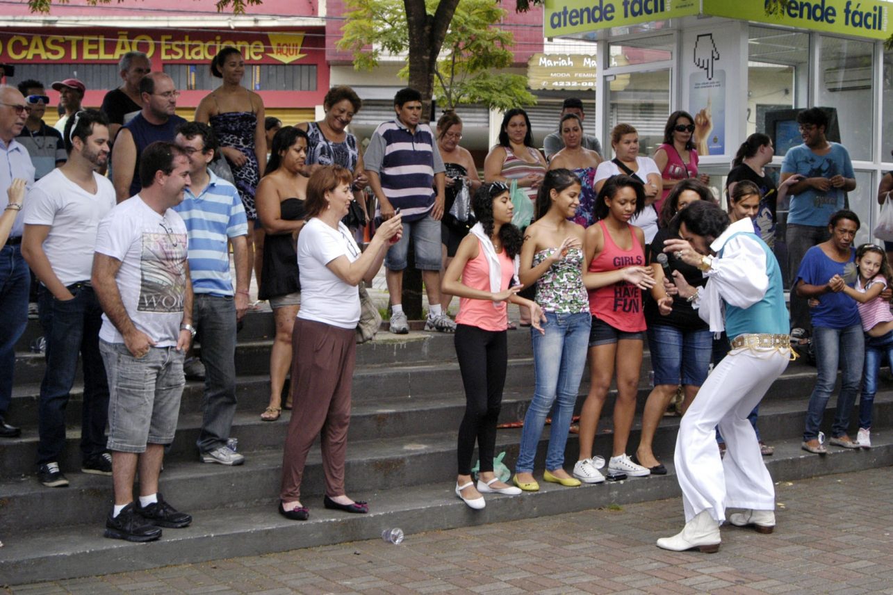 Já se aproximava das 14h quando teve início o show que encerrou as apresentações do sábado em grande estilo. Gean Presley, cover do Rei do Rock, atraiu ainda mais pessoas à Praça da Figueira. O cantor dançou com o público e cantou os principais clássicos de Elvis.