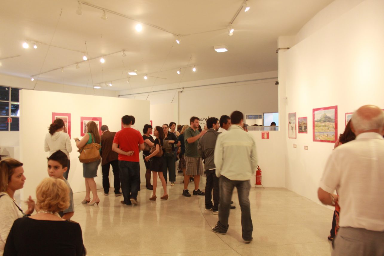 Público aprecia obras da exposição Aquarelas - A Cor da Memória.