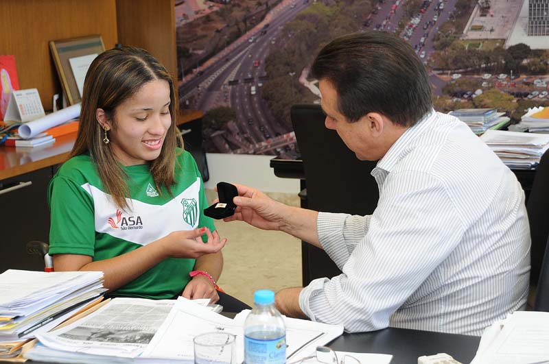 O prefeito de São Bernardo do Campo, Luiz Marinho, recebeu na manhã da última quarta-feira (11), em seu gabinete, a mesa-tenista Raiza Francisca Farias Pereira da Silva, que foi convocada para a seleção brasileira de tênis de mesa para disputar os Jogos Parapan-Americanos na Argentina, em Buenos Aires, entre 13 a 20 de outubro. Também participou do encontro o vereador José Cloves da Silva.