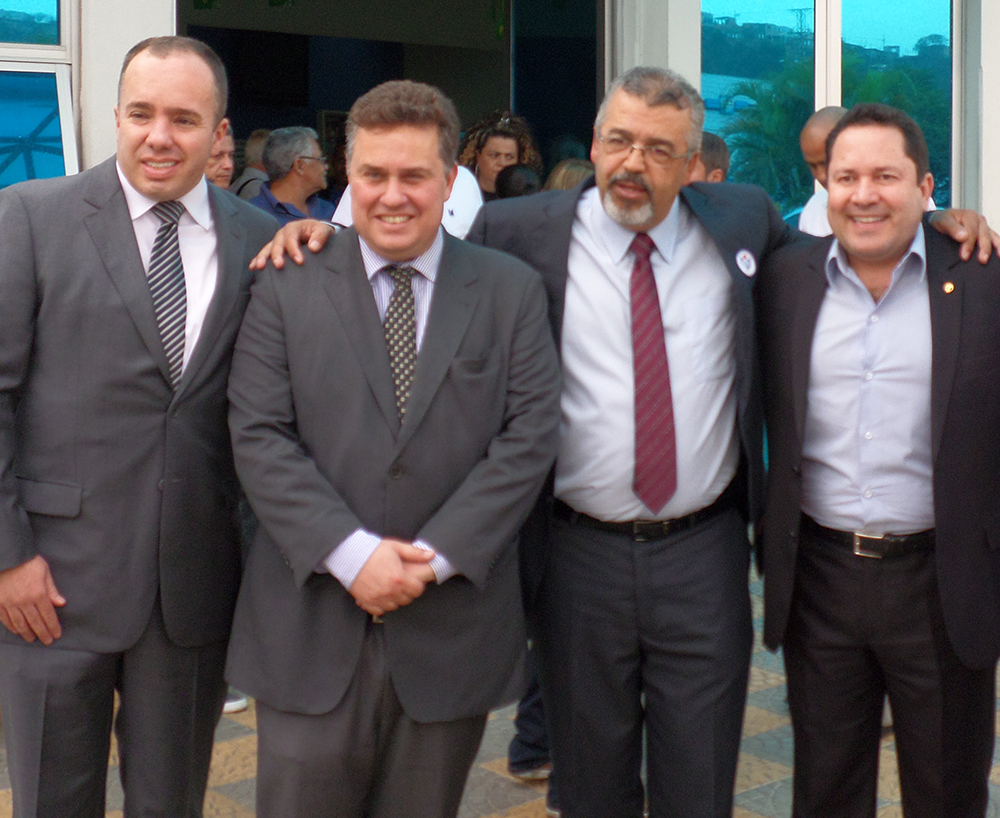 Adler Kiko Teixeira candidato a deputado federal, prefeito de Rio Grande da Serra, Gabriel Maranhão, Adelto Cachorrão e o deputado Paulinho da Farmácia de São José dos Campos - durante a posse do vereador no Legislativo Mauense na última terça-feira.