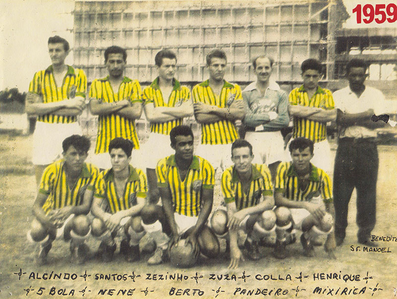 Na arte e na foto o campo de terra batida é do chamado Dell Guerra ao fundo surgia o centro de pesquisas da Ford senão curtamos como segue da esquerda para a direita: Alcindão, Santos, Careca, Zuza, Colla, Henrique, o técnico Benedito Manoel, João Pandeiro, Mixirica. Que com seu futebol enobreceram as cores do São José Futebol Clube. Aguardem pois novas emoções estarão reservadas nestas seis décadas do clube fundado em primeiro de março de 1954.
