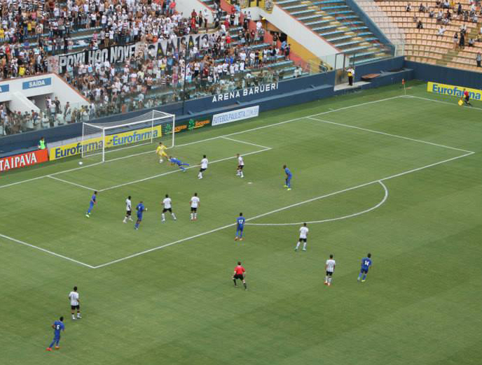 Aos 26, falta para o Corinthians. Marciel soltou a bomba da intermediária, e contou com uma infelicidade do goleiro Victor Cecchini, que espalmou a bola para dentro do gol.