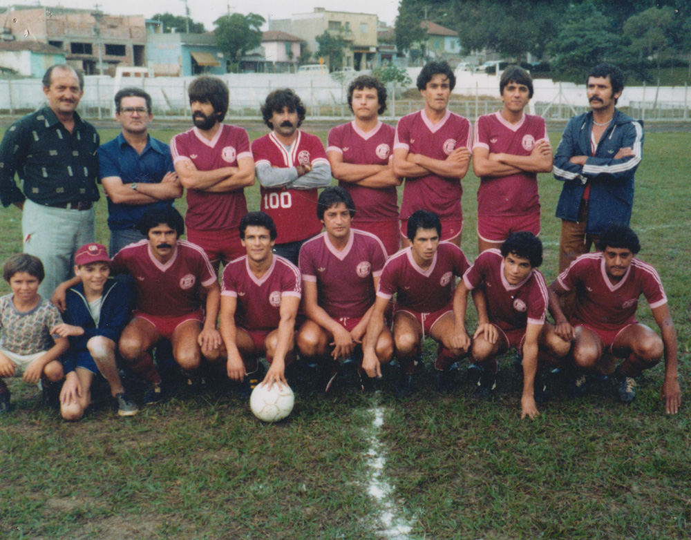 Hoje o União Vila São José através do Cantinho do Zezé Memórias quer render tributo ao recorde inusitado obtido por Altevir Vargas Anhê que em suas 100 partidas com a camisa grená teve em sua trajetória no futebol amador 75 vitórias, 24 empates, 01 derrota (Funilaria da GM), 427 gols foram feitos na performance do correto atleta, 136 gols sofridos para o fantástico saldo de 301 gols. Para marcar com muita gratidão. Ilustra a matéria esportiva uma das formações do amigo Anhê, senão vejamos da esquerda para a direita Armando Furlan, Zezé, o nosso homenageado Altevir Vargas Anhê, Walter Roberto, Zelão Oliveira, Roberto Campi “Bia” Norão e o técnico José Deusdedite da Silva, agachados: o mascotinho Zé Roberto, o saudoso Adriano, Arizinho, Roque Galati, o saudoso Zitinho, Eduardo Marinho, o saudoso Zé Criolo.