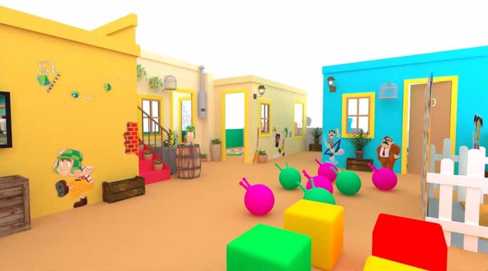 A Escola do Professor Girafales foi especialmente pensada para os pequenos artistas: ali eles se divertem colorindo diversos desenhos da Turma do Chaves. Enquanto isso, na Casa da Dona Clotilde acontece uma animada gincana, cujo desafio envolve uma corrida para acertar o famoso sanduíche de presunto no barril do Chaves.