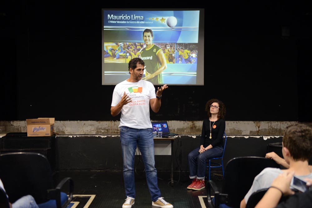 Ex-jogador de vôlei, Maurício se encontrou com cerca de 50 jovens que fazem parte das equipes de base de São Bernardo; ação faz parte do programa ‘Cidade Responsável’