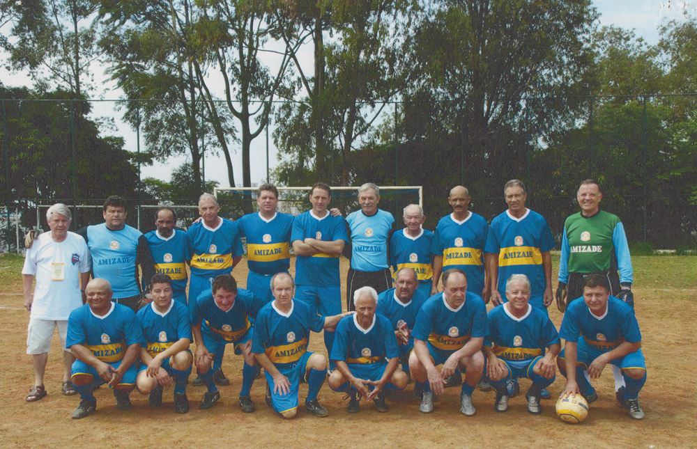 Da esquerda para a direita o Prof. Luis Carlos Zanirato Maia, o maior artilheiro do futebol society com 519 gols que somados aos do futebol de campo atingem a marca de 675 gols, nota da redação na quadra sintética do Bairro Santa Maria, administração do Wagner Toledo, o moçoilo ultrapassou de 1.200 gols devidamente armazenados nos computadores, Arizinho que passou pelo Atlético Latino (USA), Bill um dos mascotes do São José Futebol Clube, Chiquinho, Tio Bastos “paulista de Suzano”, Pedrão da Fitt Car, Paulão, o saudoso Xavéco, Fernando, Rubinho, Toninho Momesso que vestiu a camisa do União em 261 jogos, agachados: após o ponto estão, Casquinha, Pedrinho Datilio, que com dois gols quebrou em 12/02/1967 o tabu frente ao Flamengo F.C., Urbano, Cerâmica e Flamengo, Barbosa ao fundo que adorava a camisa número 10, Luis Carlos (Cruzeiro, Portuguesa de Desportos, SAAD EC, São José Futebol Clube, Ilídio de Freitas Queiroga “Mané Boiadeiro” e o versátil José Francisco de Oliveira “Zelão de Oliveira” recordista maior do Bairro São José, com mais de 1.300 partidas pelos clubes locais “em tempo” as nuvens podem esconder as estrelas, porém as nuvens passam e as estrelas permanecem.