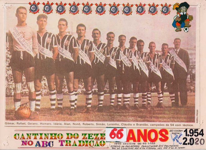 Confira os astros e talentosos atletas do “Coringão” na tradicional fila indiana: Gilmar, Rafael, Goiano, Homero, Idário, Alan, Nonô, Roberto Balangero, Simão, Luisinho, Claudio e o saudoso técnico Oswaldo Brandão, homenagem essa que fazemos as grandes conquistas do Sport Club Corinthians Paulista e sua imensa massa torcedora.